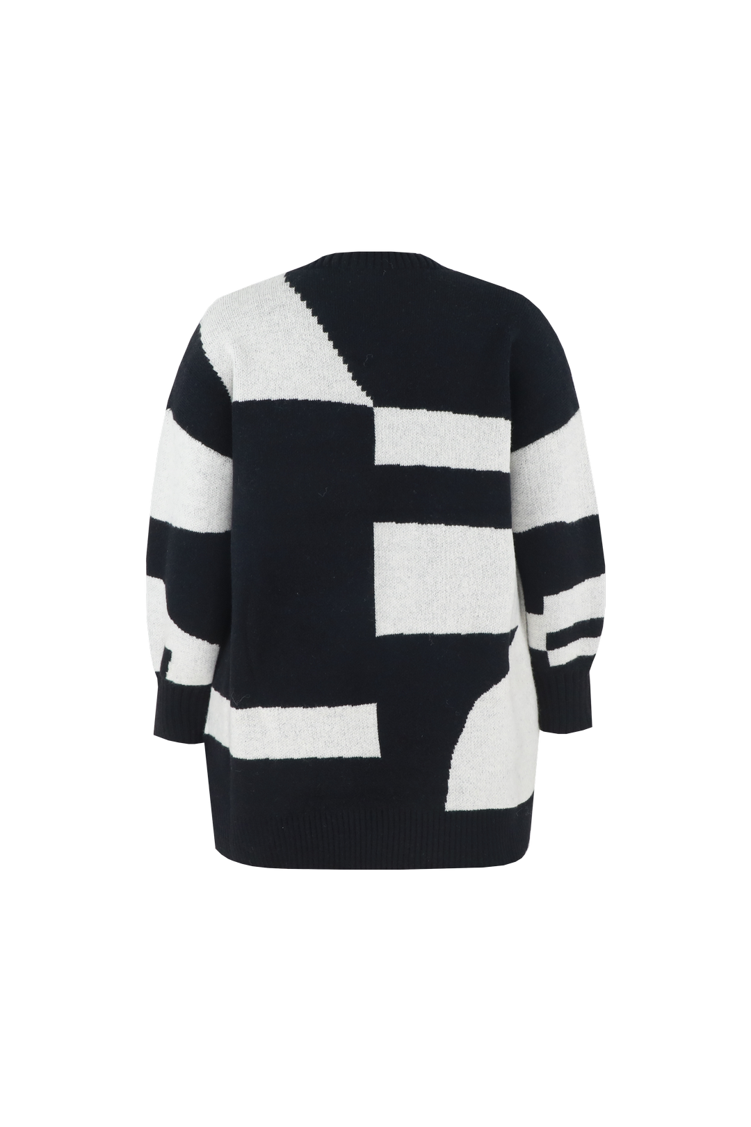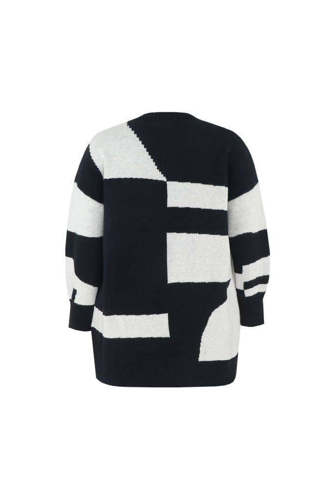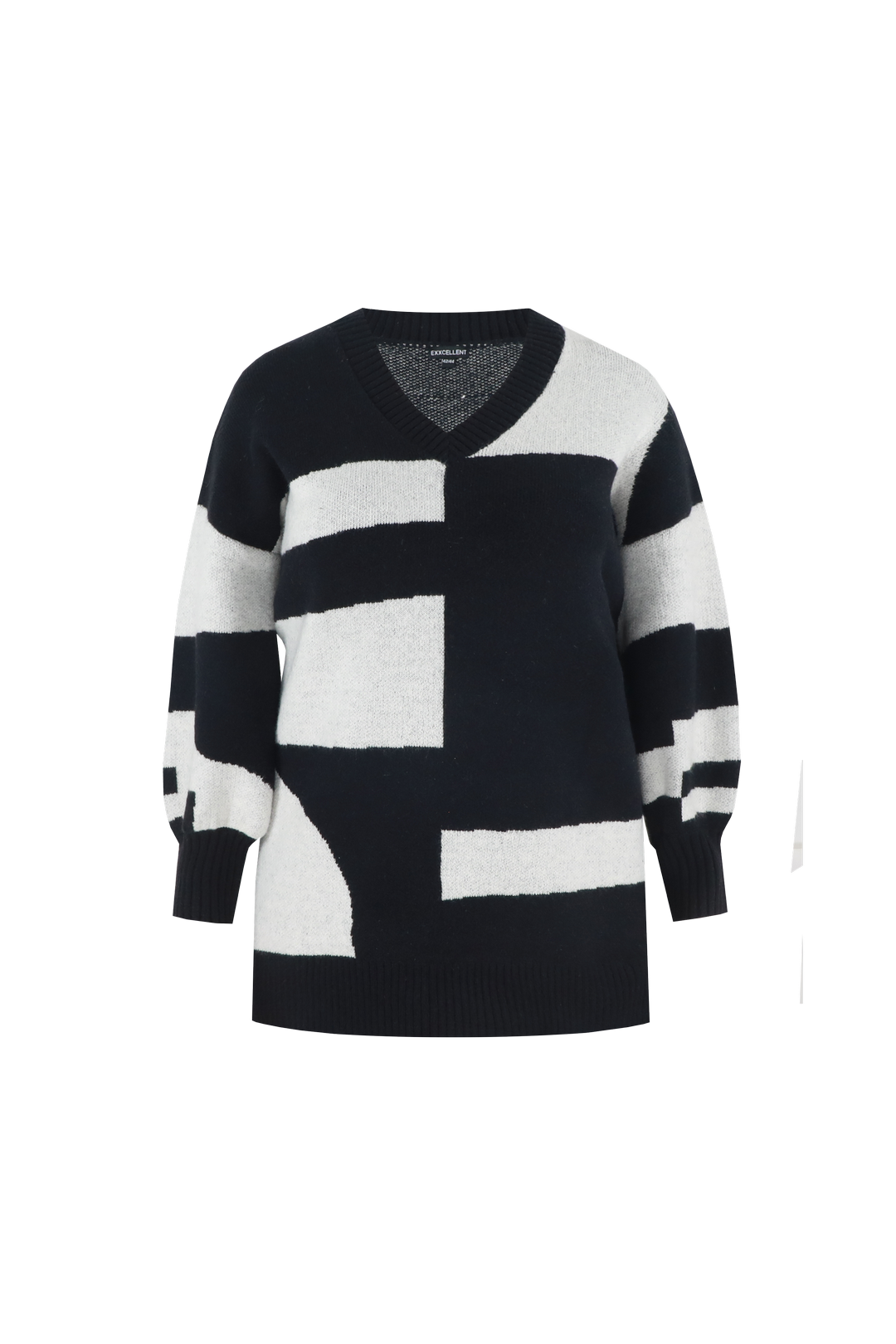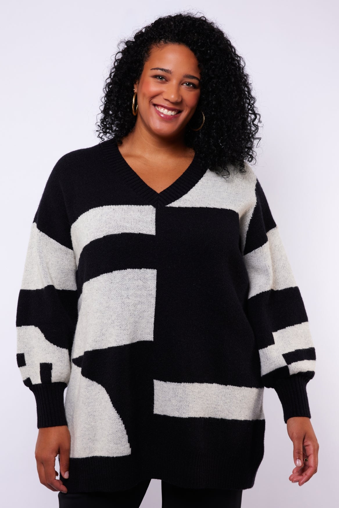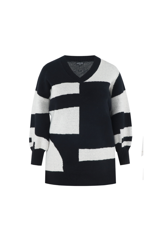 De Chantal trui valt op door het grafische dessin en de moderne uitstraling. De V-hals en de rechtvallende pasvorm geven het model een flatterend silhouet. De trui is afgewerkt met geribde boorden en heeft mouwen met een lichte pof, wat zorgt voor een eigentijdse look. Draag deze trui met een effen onderstuk voor een stijlvolle en gebalanceerde outfit.