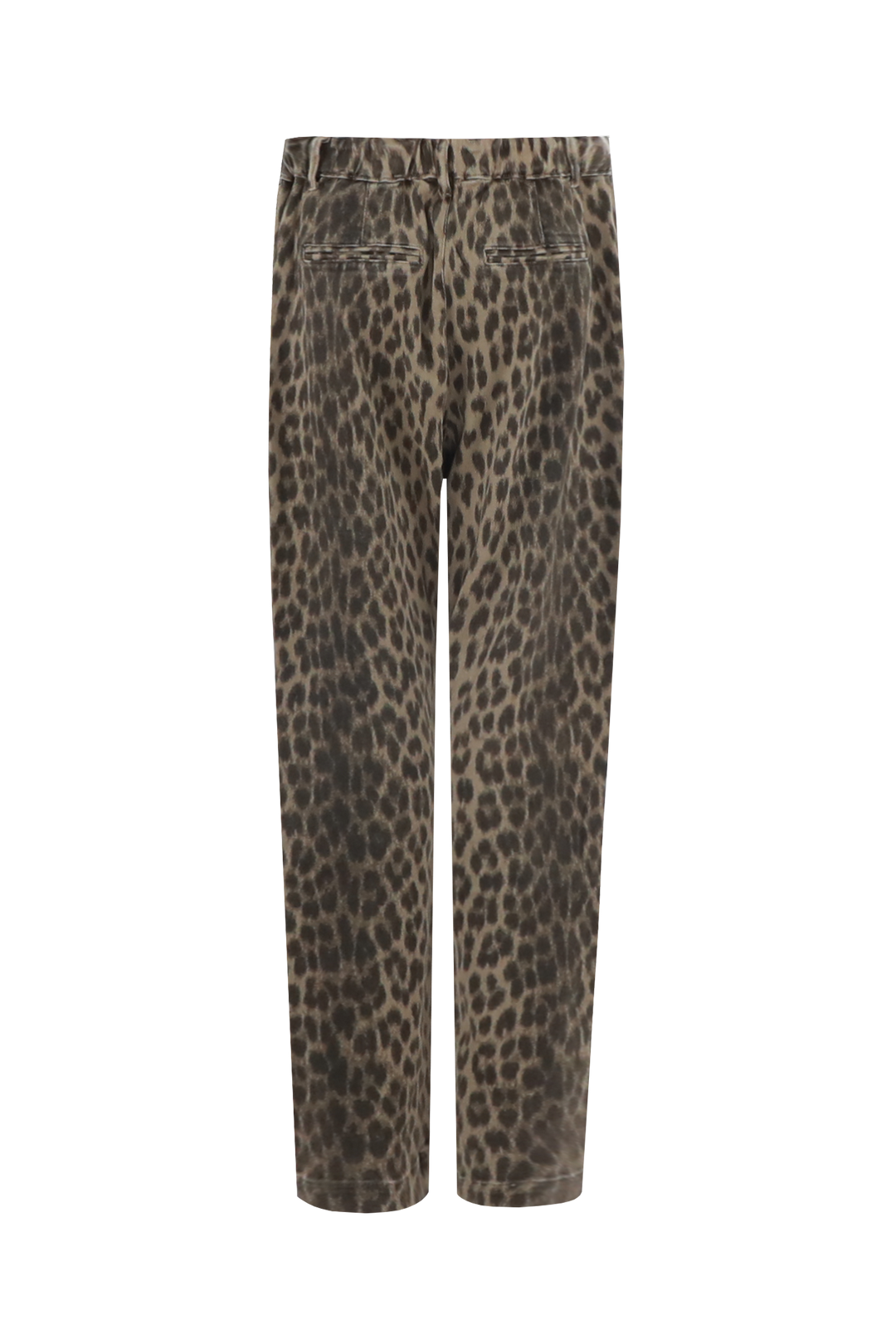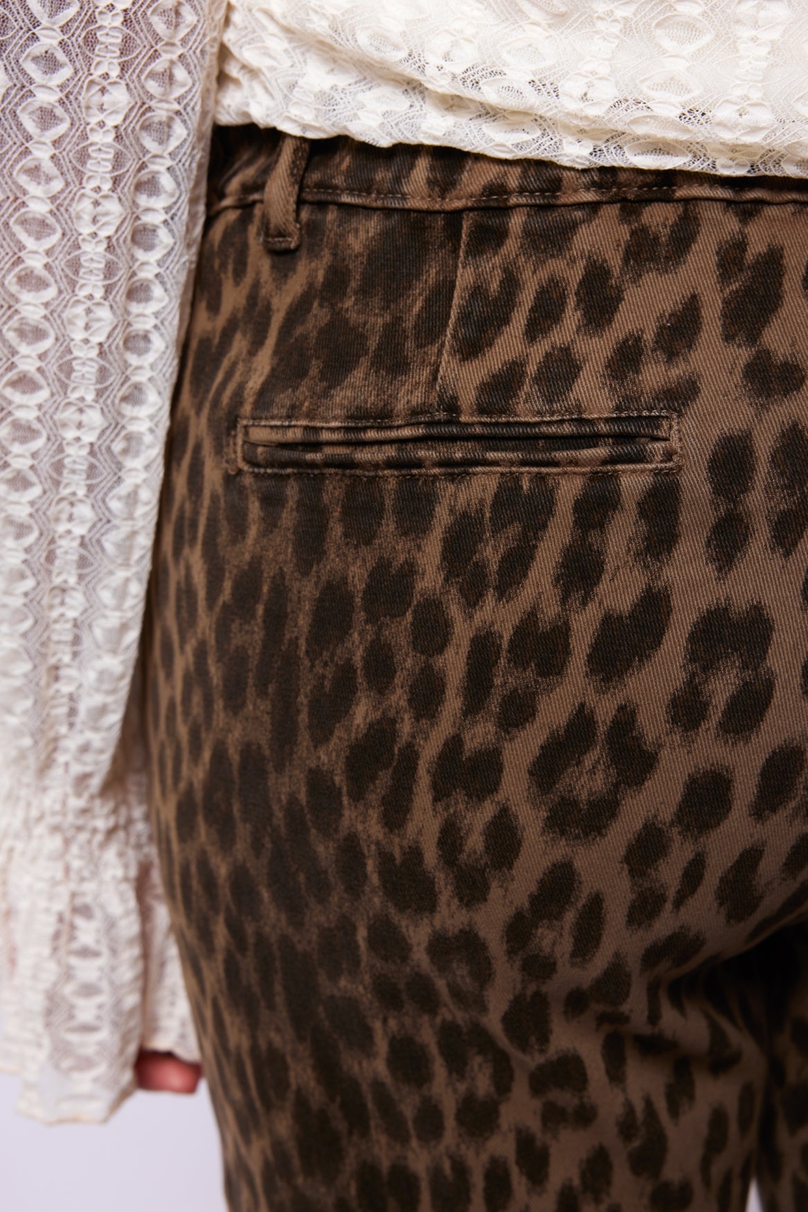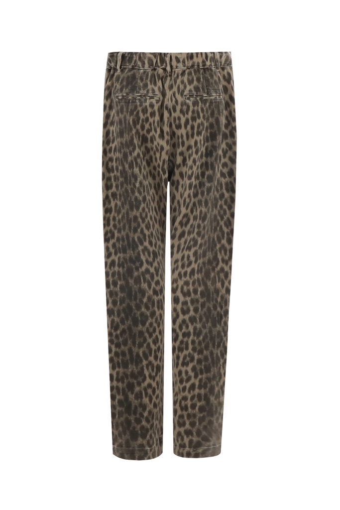 De Liora broek is een echte blikvanger dankzij de opvallende panterprint. Deze broek heeft een rechte pasvorm met een iets taps toelopende pijp, wat zorgt voor een flatterend silhouet. De elastische tailleband aan de achterzijde biedt extra comfort, terwijl de siernaden aan de voorkant en de paspelzakken aan de achterkant zorgen voor een verfijnde uitstraling. Combineer de Liora broek met een effen top voor een gebalanceerde look of ga voor een gedurfde combinatie met een statement blouse.