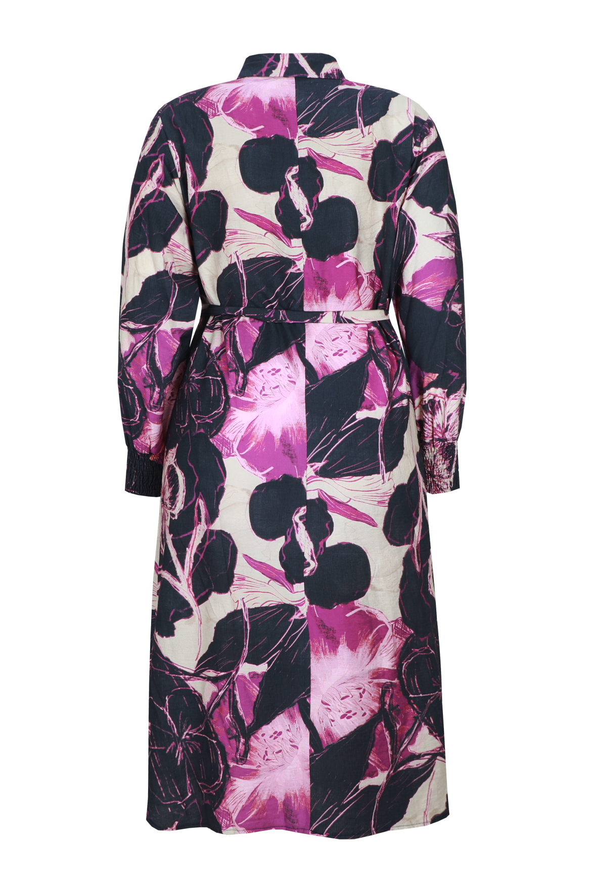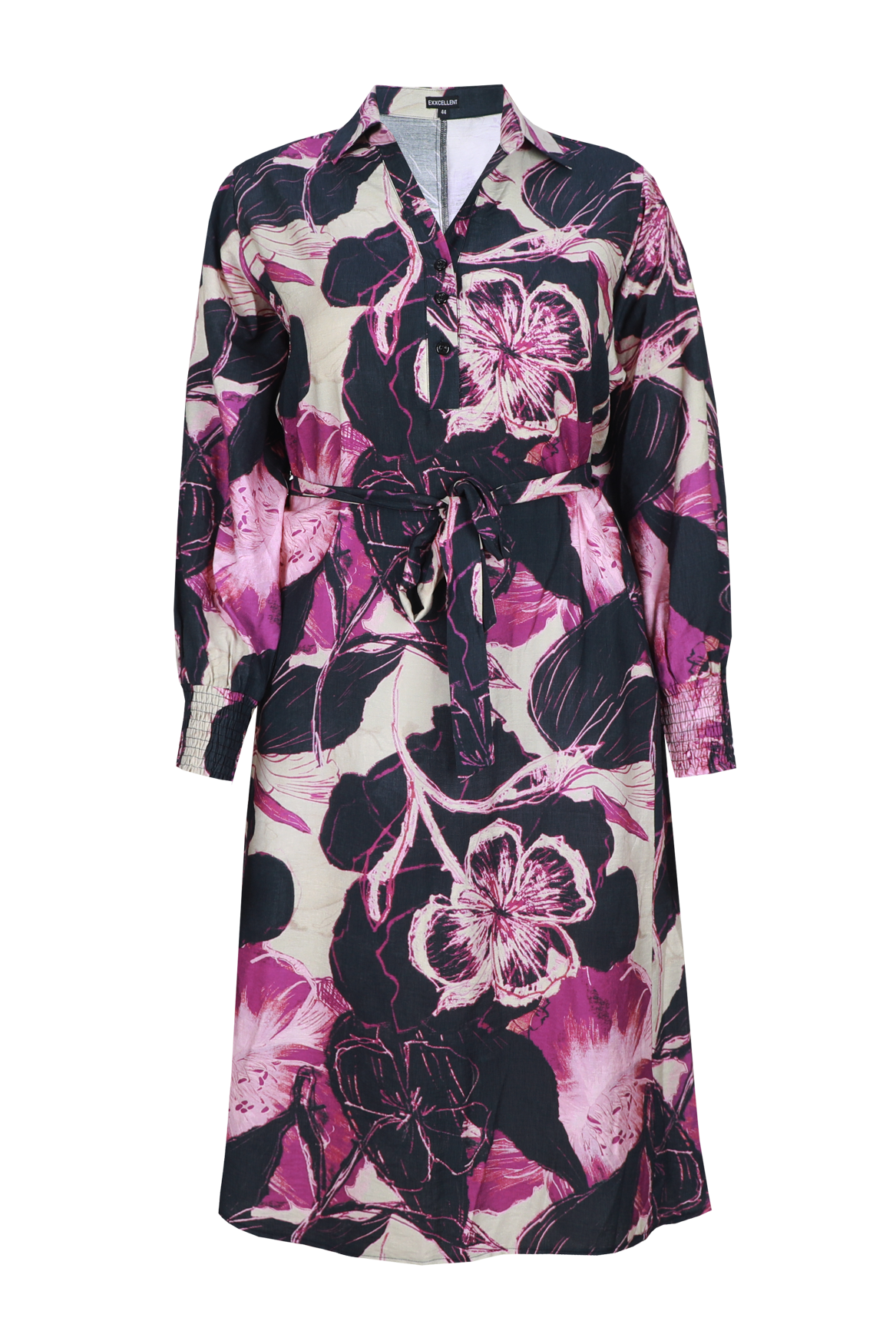 Een stijlvolle jurk die moeiteloos klasse en comfort combineert. De Yvette jurk heeft een verfijnde print en een doorknoopsluiting met strikceintuur, waarmee je de taille elegant accentueert. De lange mouwen met smockdetail zorgen voor een vrouwelijke en moderne uitstraling, perfect voor zowel werk als weekend.