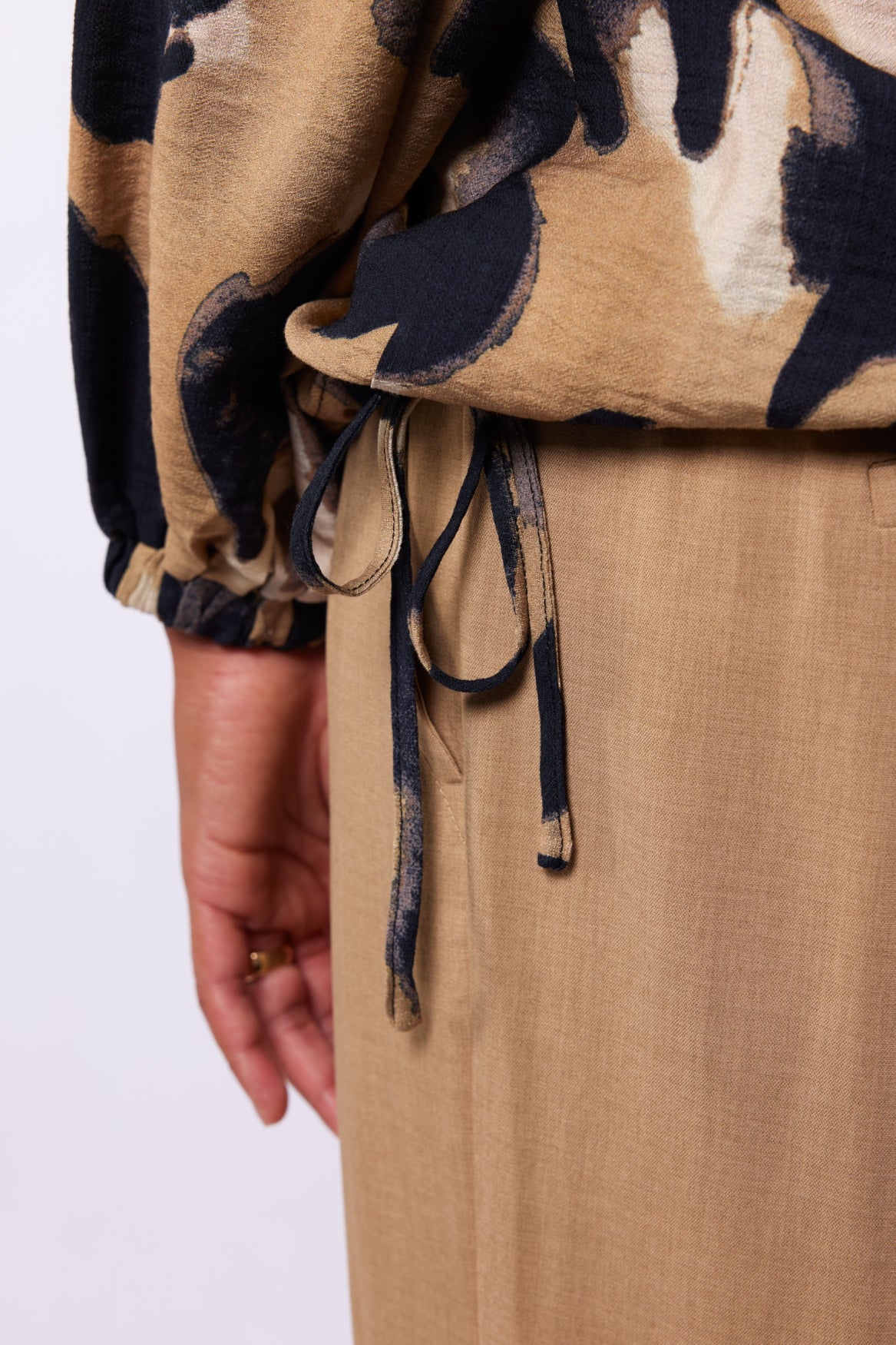 Voor een look met karakter en flair. De Aria top valt op door haar expressieve animalprint en luchtige stof met een subtiele glans. De V-hals en het strikkoordje aan de zoom zorgen voor een vrouwelijke touch, perfect om zowel casual als chic te dragen. Voor dit artikel adviseren we een koud handwas.