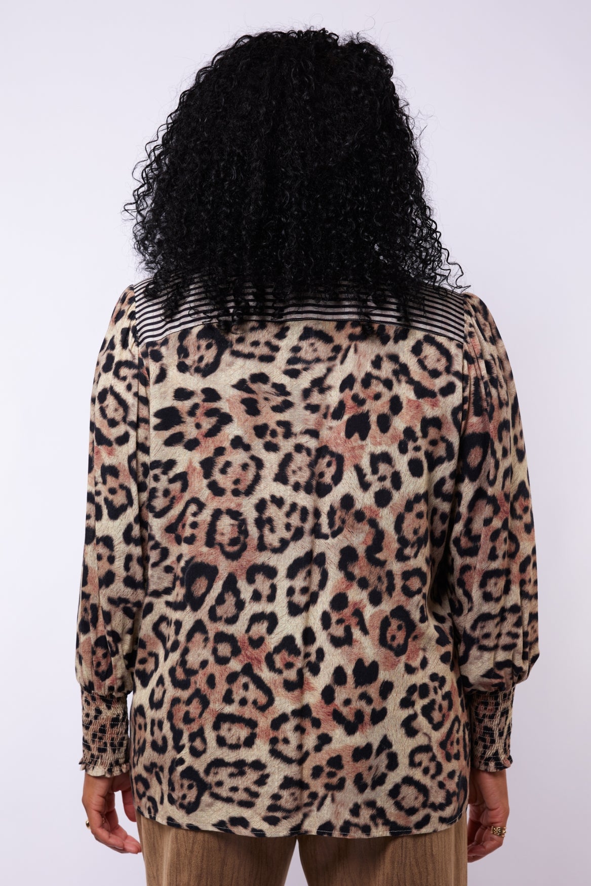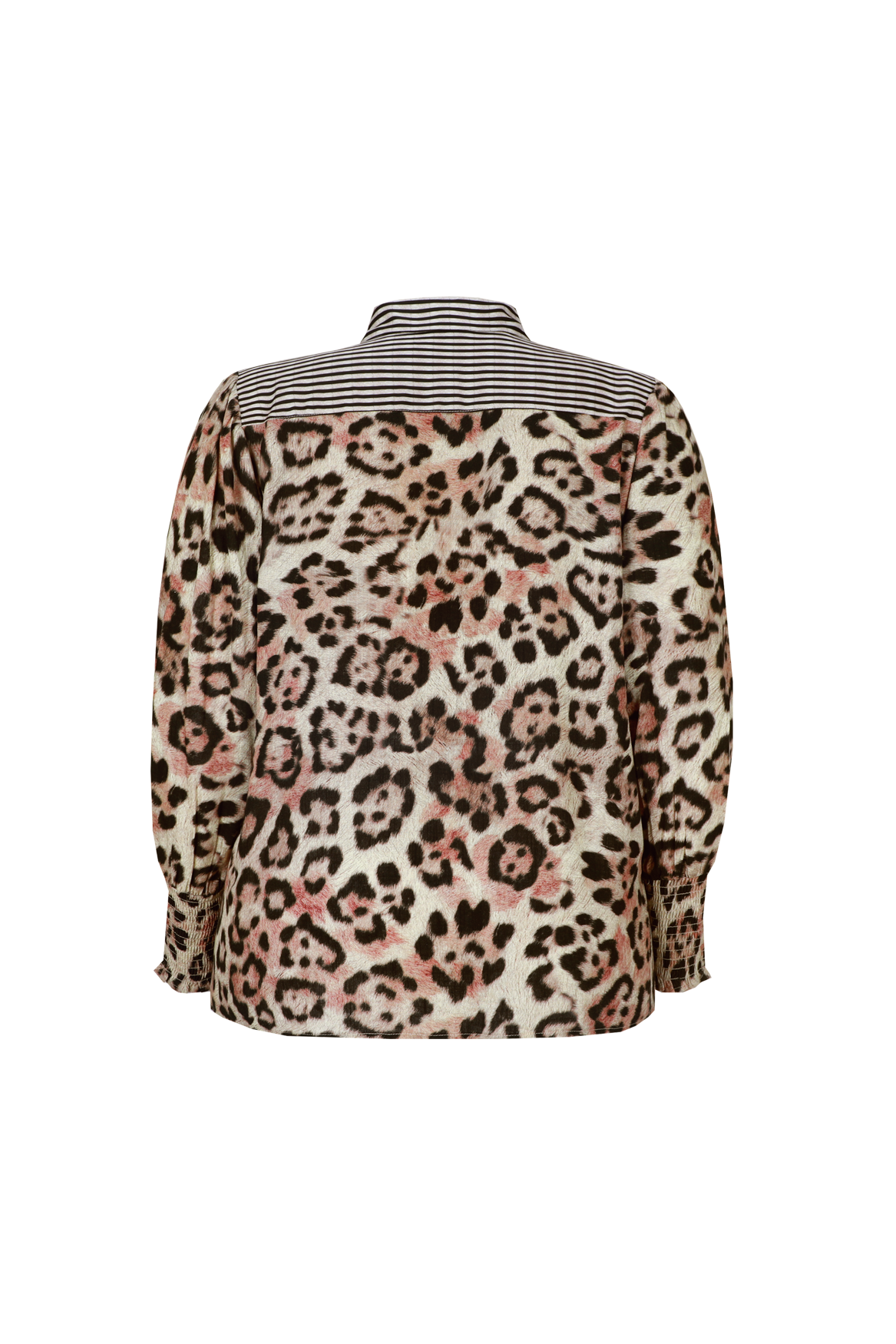Voel je zelfverzekerd en stijlvol met deze opvallende blouse. De Ayla blouse heeft een modieuze luipaardprint in zachte tinten en combineert dit met een gestreepte kraag en manchetten voor een speels contrast. De soepele viscosekwaliteit valt mooi om het lichaam en voelt comfortabel aan. Perfect om je look een eigentijdse boost te geven. Voor dit artikel adviseren we een koud handwas.