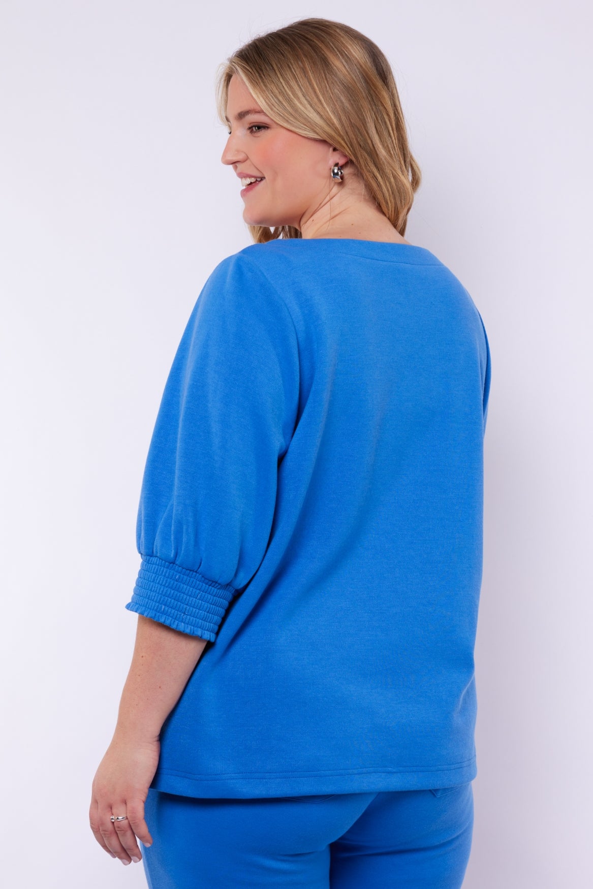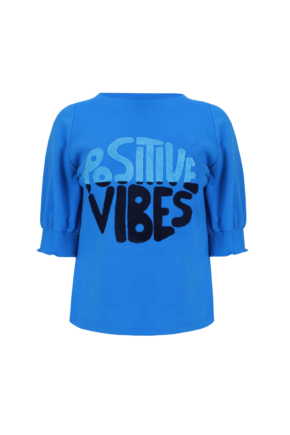 Breng wat positiviteit in je dag met een vleugje comfort. De Fenna sweater heeft een frisse uitstraling dankzij de zachte kleur en speelse “Positive Vibes” tekst. De korte pofmouwen met gesmokte boorden geven het item een vrouwelijke twist. Combineer met de Lauren broek voor een relaxte, stijlvolle look.