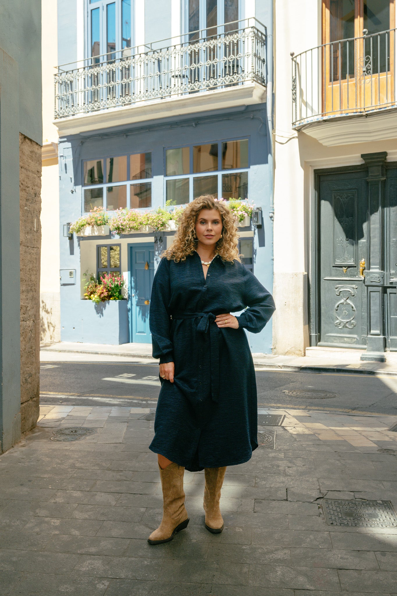 Een klassieker met een moderne twist. De Giselle jurk heeft een verfijnde doorknoopsluiting, bijpassende ceintuur en licht gepofte mouwen voor een vrouwelijke uitstraling. De zachte viscosemix valt soepel en zorgt voor een comfortabele pasvorm, ideaal voor zowel werk als vrije tijd. Voor dit artikel adviseren we een koud handwas.