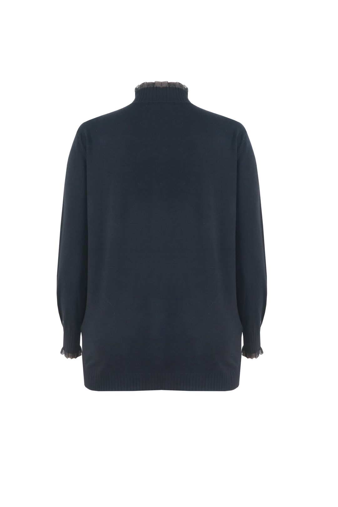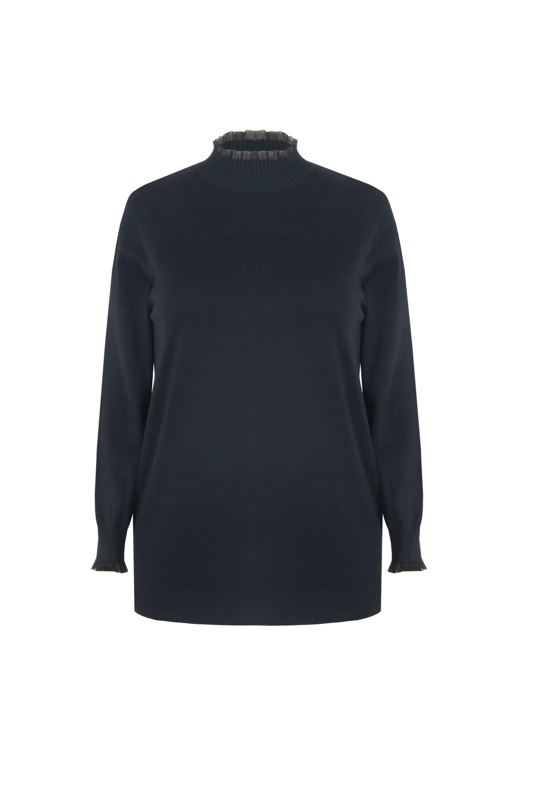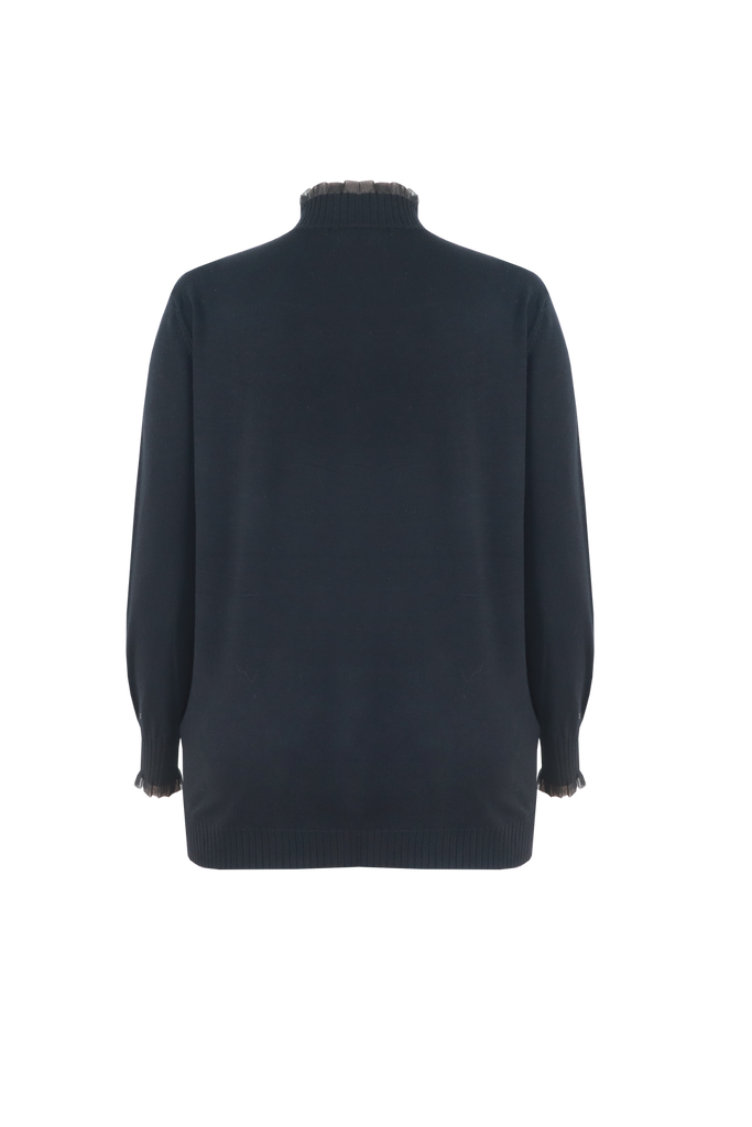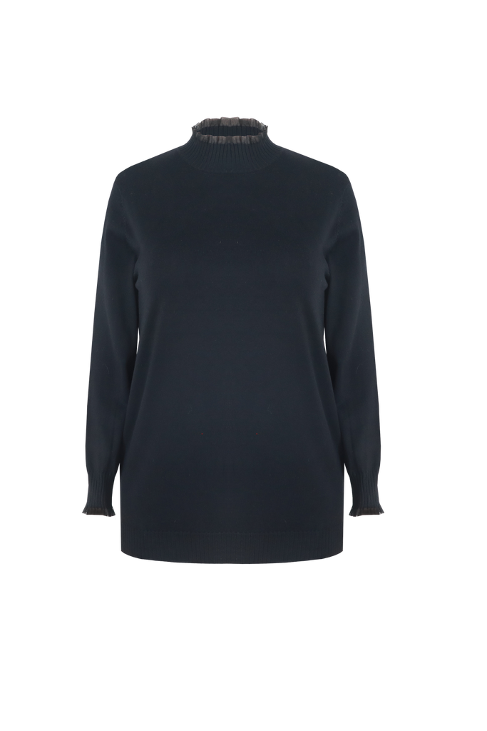 De Jorien trui is een stijlvolle essential met een vrouwelijke twist. De fijne ribstructuur bij de opstaande hals en mouwboorden wordt speels aangevuld met een subtiel geplooid detail dat net onder de rand uitkomt. Deze elegante afwerking geeft de trui een verfijnde uitstraling zonder in te leveren op comfort. De rechte pasvorm en soepele knit maken het een veelzijdig item dat moeiteloos gecombineerd kan worden, zowel casual als chic. Een zachte basic die net dat beetje extra geeft.