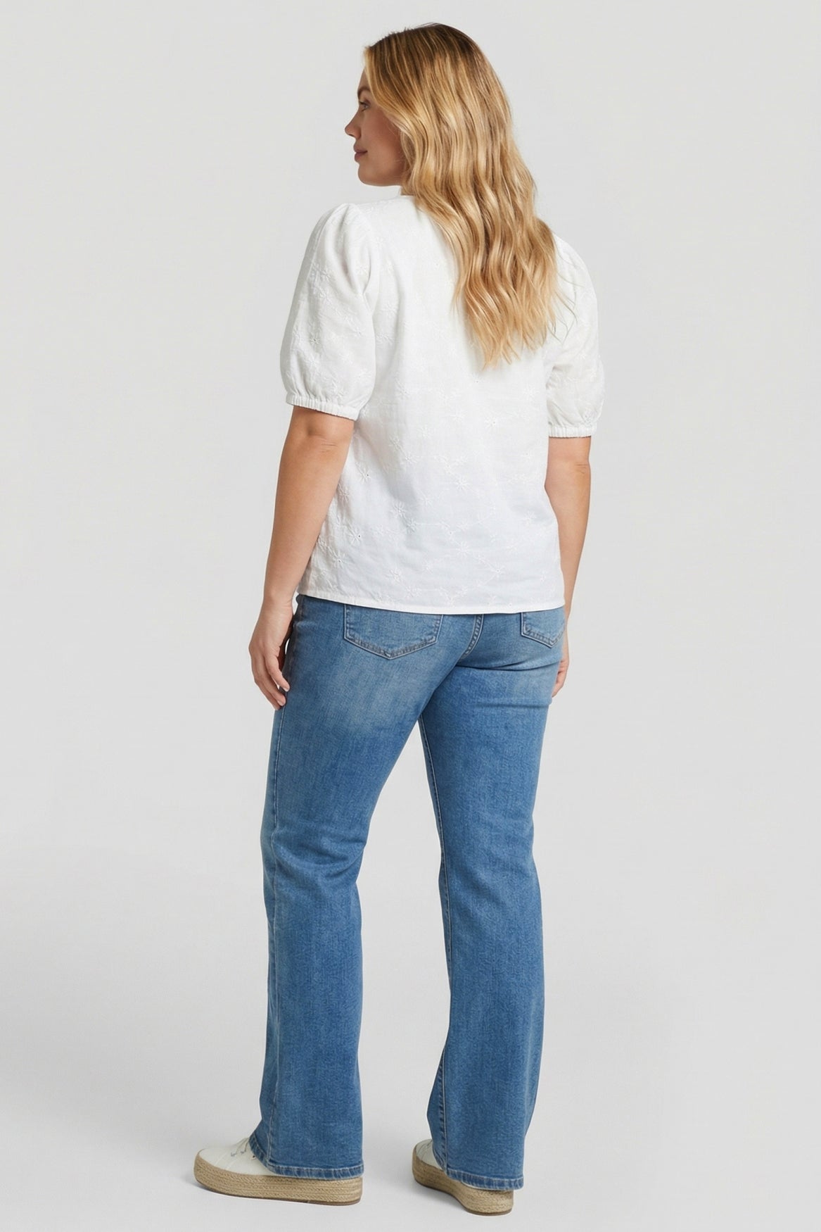 Een verfijnde top met een zachte en vrouwelijke uitstraling. De Lorelai top heeft een losvallende pasvorm met een flatterende V-hals en korte pofmouwen met elastische afwerking. De subtiele broderie geeft het ontwerp een elegante en luchtige touch, terwijl de soepele stof zorgt voor optimaal draagcomfort. Perfect om moeiteloos te combineren met zowel een jeans als een rok.