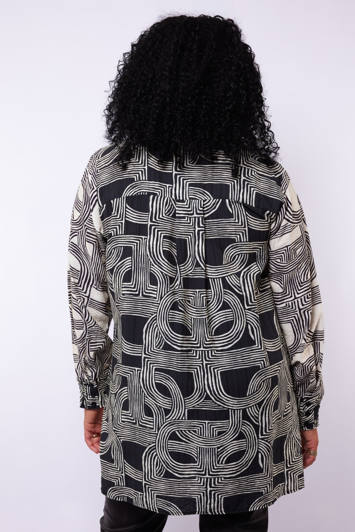 Een echte eyecatcher met een moderne twist. De Sally tuniek valt op door haar grafische print en doordachte details, zoals de contrasterende kraag en manchetten. De soepele stof en rechte pasvorm zorgen voor een elegante, comfortabele look die zowel casual als chic te dragen is. Voor dit artikel adviseren we een koud handwas.