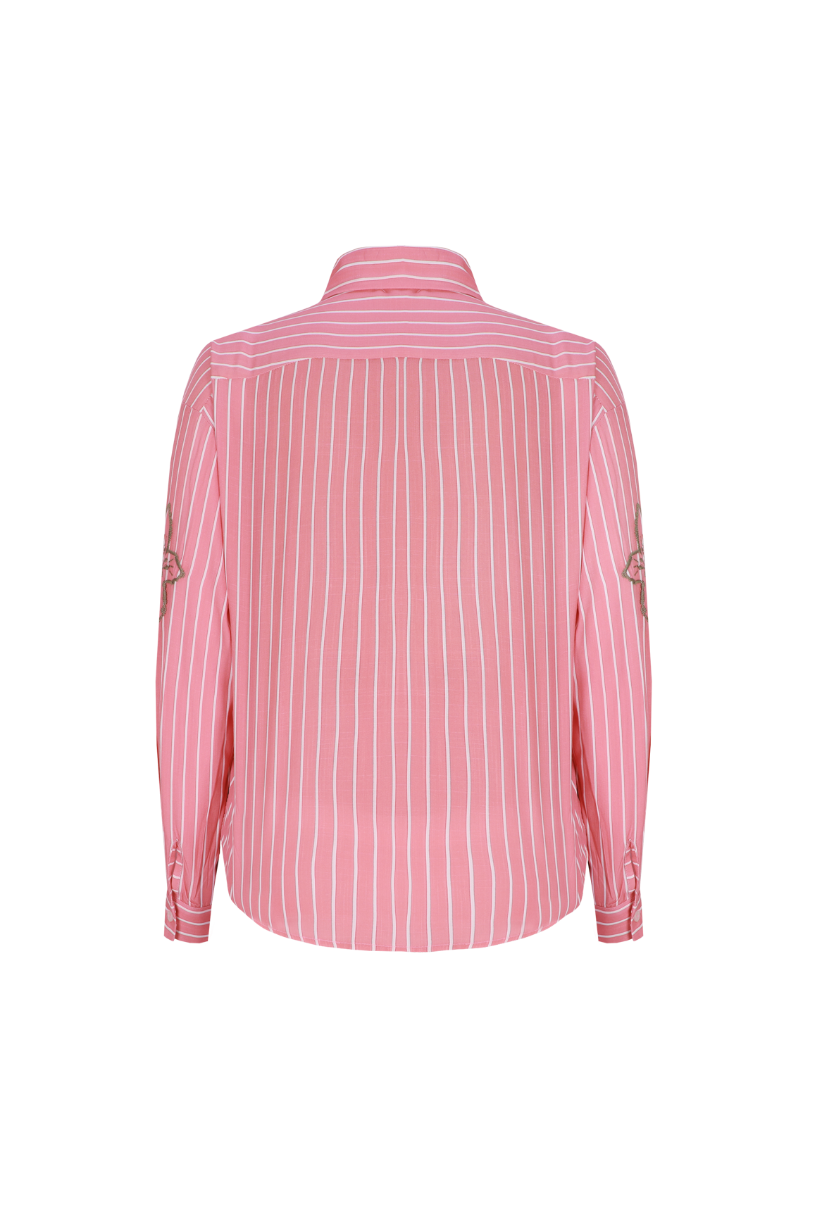 Fris, vrouwelijk en vol karakter. De Simone blouse combineert een klassiek streeppatroon met subtiele geborduurde bloemen voor een eigentijdse twist. De luchtige katoenen kwaliteit zorgt voor draagcomfort, terwijl de rechte pasvorm een moderne uitstraling geeft. Perfect voor een casual chic look.