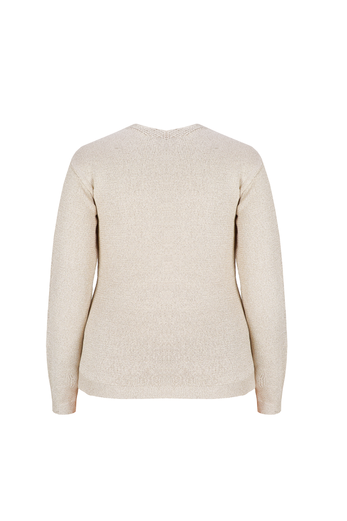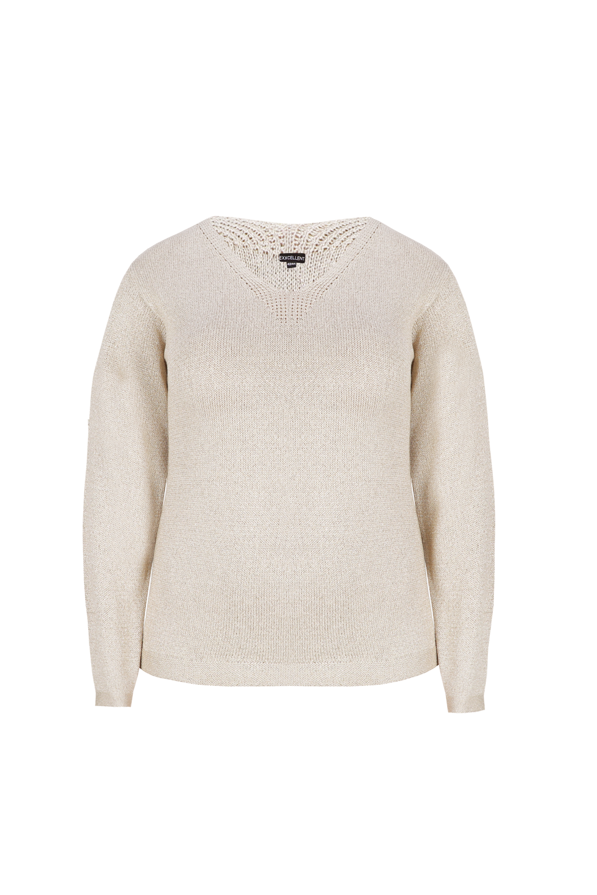 De Vita top combineert comfort en stijl in één. De subtiele metallic glans en de V-hals met opengewerkt breisel geven deze knit een verfijnde look. Gemaakt van zachte katoenmix, voelt de stof heerlijk zacht aan en zorgt ze voor een elegante uitstraling, perfect voor elke gelegenheid.